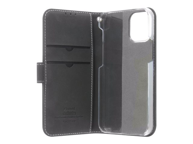 Insmat Exclusive Flip Case - Läppäkansi matkapuhelimelle - aito nahka, paperi, pahvi, polykarbonaatti, alumiinifolio - musta malleihin Apple iPhone 12 mini 650-2878