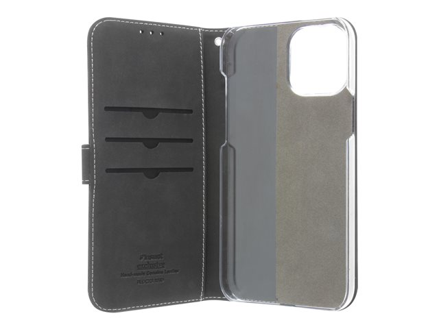 Insmat Exclusive Flip Case - Läppäkansi matkapuhelimelle - paperi, pahvi, nahka, polykarbonaatti, puuvilla, alumiinifolio - musta malleihin Apple iPhone 12 Pro Max
