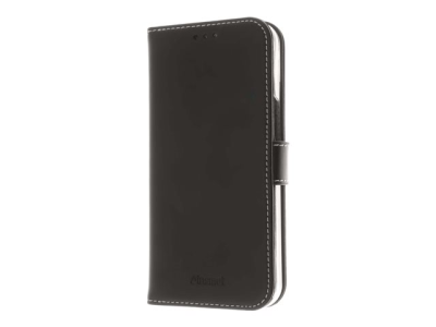 Insmat Exclusive Flip Case - Läppäkansi matkapuhelimelle - nahka, polykarbonaatti, puuvillaompeleet, pahvi + paperi - musta malleihin Apple iPhone 14 Pro