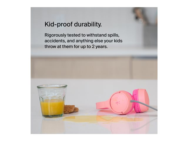 Belkin SoundForm Mini - Kuulokkeet mikrofonilla varustettu - korvien päällä - langallinen - 3,5 mm jakkiliitin - vaaleanpunainen AUD004BTPK