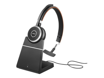 Jabra Evolve 65 SE UC Mono - Kuulokkeet + mikrofoni - korvien päällä - Bluetooth - langaton - USB - sekä latausalusta - optimoitu UC:lle