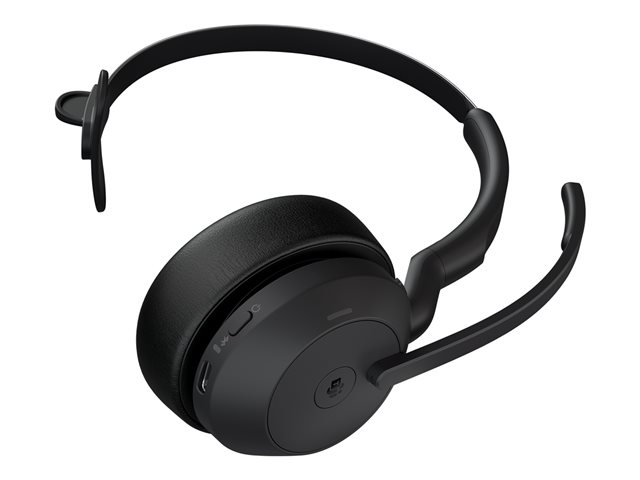 Jabra Evolve2 55 MS Mono - Kuulokkeet + mikrofoni - korvien päällä - Bluetooth - langaton - aktiivinen melunpoisto - USB-C - musta - sertifioitu Microsoft Teamsille 25599-899-899