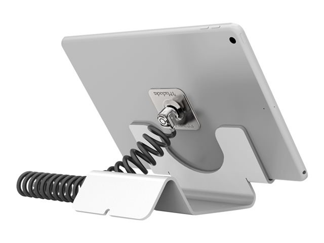 Compulocks Universal Tablet Holder with Coiled Cable Lock - Teline malleihin tabletti - lukittava - korkealaatuinen alumiini - valkoinen - työpöytä