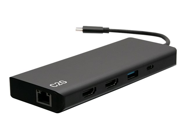 C2G USB C Docking Station - Dual Monitor Docking Station with 4K HDMI, USB, Ethernet, and AUX - Power Delivery up to 60W - Telakointiasema - USB-C / Thunderbolt 3 - 2 x HDMI - 1GbE - TAA-yhteensopiva